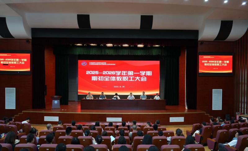 8月28日,江苏省吴江中等专业学校2025—2026学年第一学期期初工作会议在半水阁报告厅举行。学校领导班子、