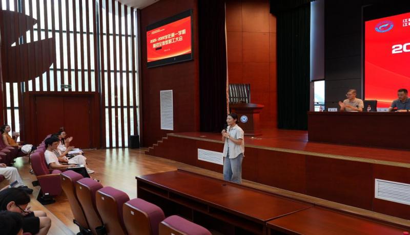 8月28日,江苏省吴江中等专业学校2025—2026学年第一学期期初工作会议在半水阁报告厅举行。学校领导班子、全体教职工参加了此次会议,会议由副校长朱国方主持。此次会议旨在明确新学期工作方向、统一教职工思想、凝聚奋进力量,扎实推进学校各项事业高质量发展。