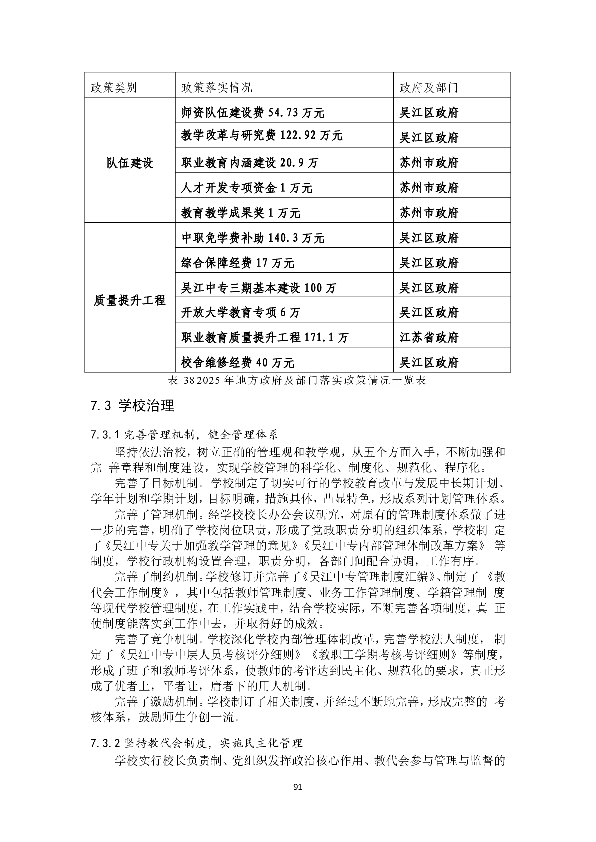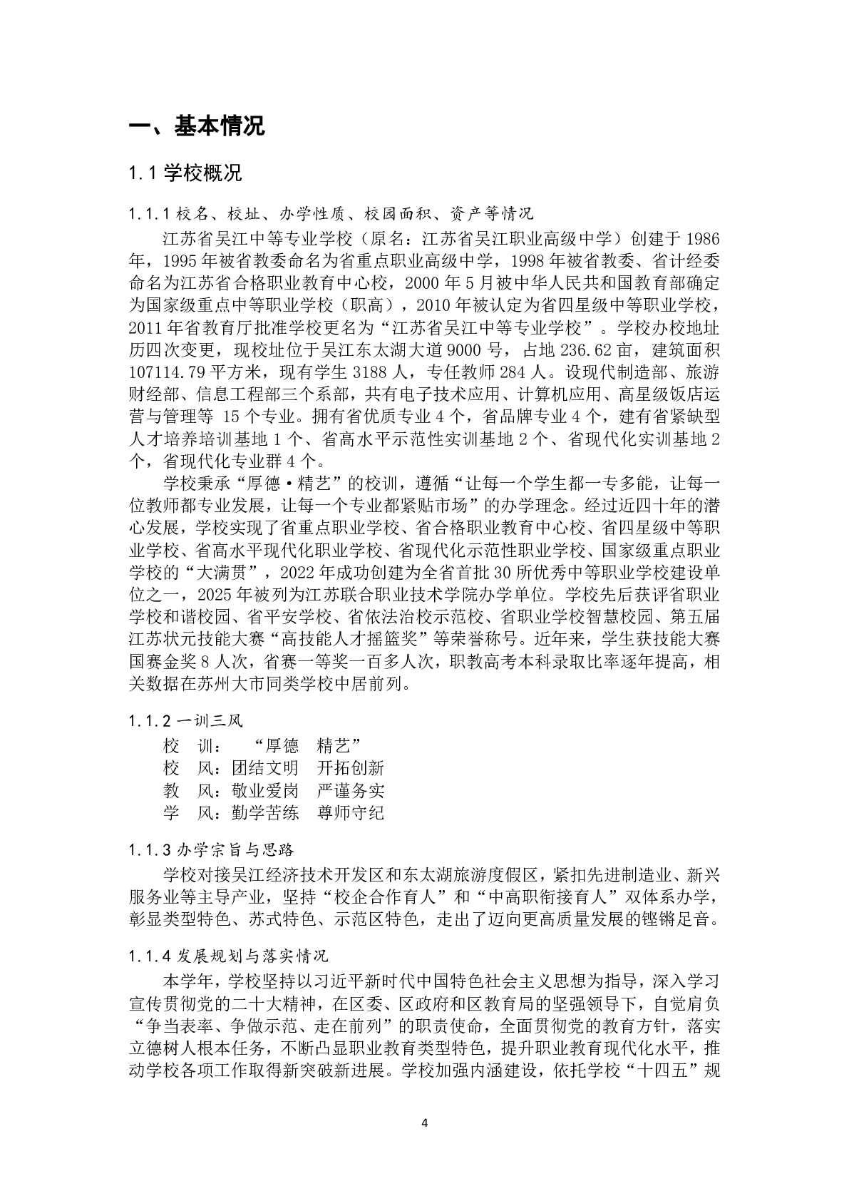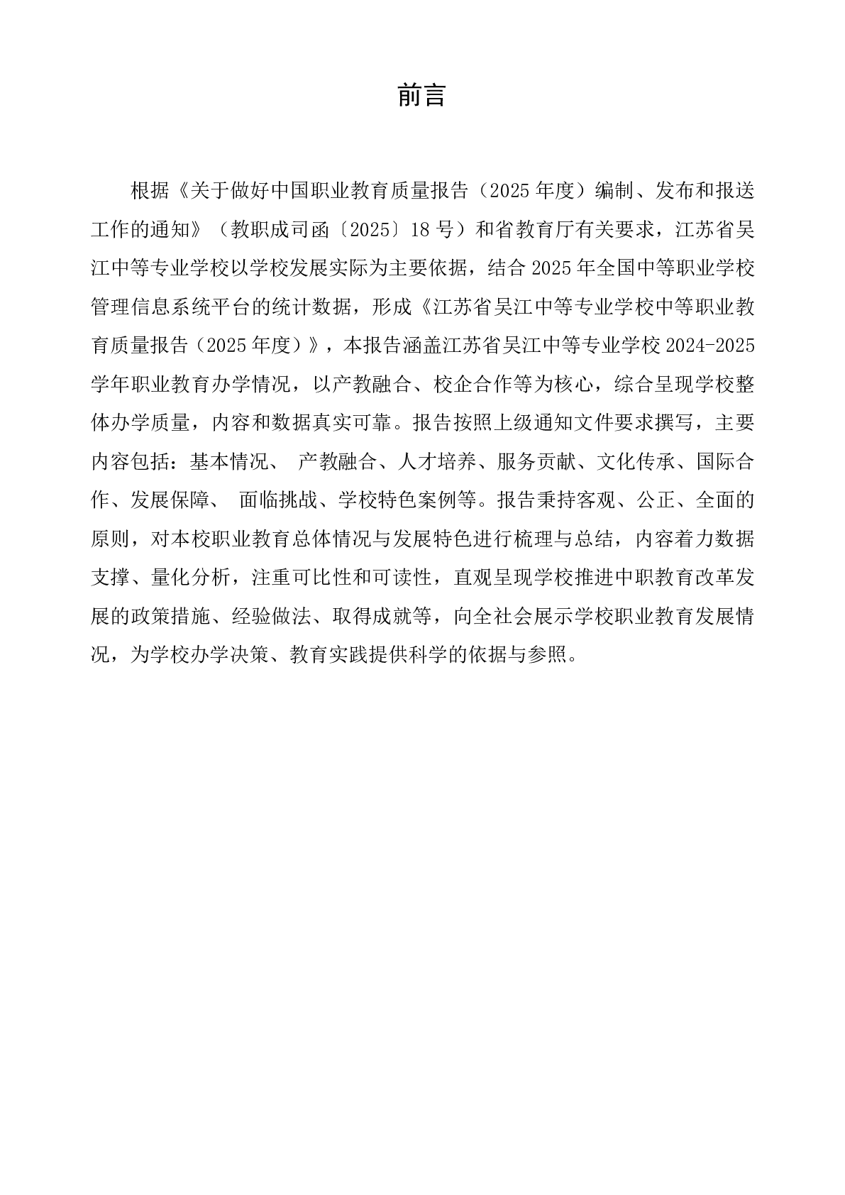 江苏省吴江中等专业学校中等职业教育质量报告(2025年度)